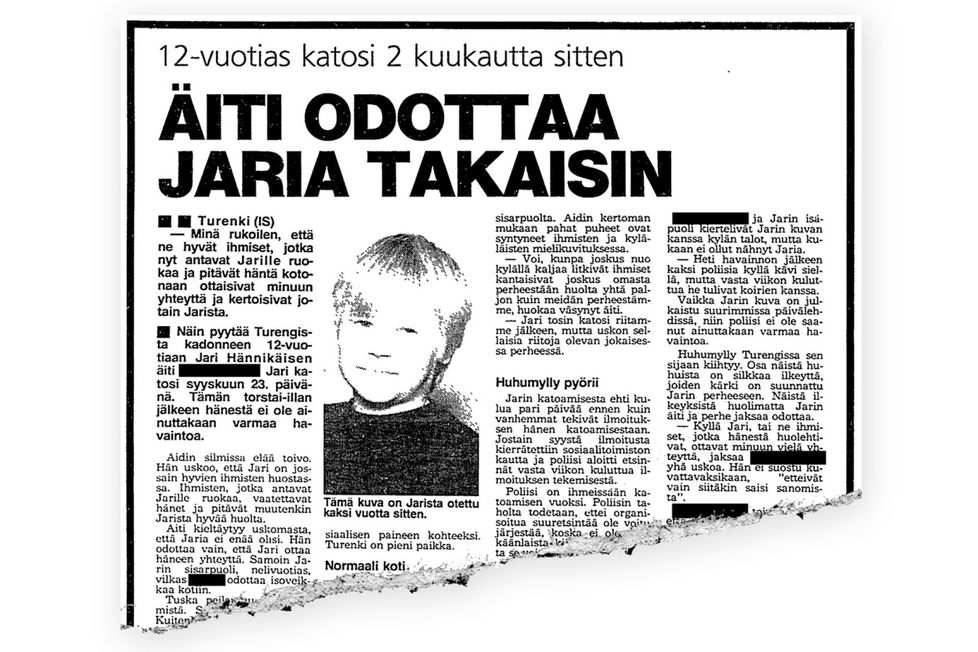 Tutki tarkemminTorstaina 23. syyskuuta Jari oli poistunut ovet paukkuen isoäitinsä tyköä ja mennyt ystävänsä luokse. Sieltä Hännikäinen oli ystävän mukaan poistunut noin kello 21. Ystävä piti mahdollisena, että Jari olisi lähtenyt liftaamaan Helsinkiin.